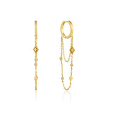 Featuring delicate draping chains embellished with cubic zirconia stones, these gold mini hoops are the earrings every bohemian wardrobe needs.