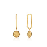 A modern take on the classic hoop; these geometric gold earrings feature a drop coin subtly embellished with black enamel. Set them off with a coordinating necklace stack for maximum impact.