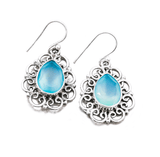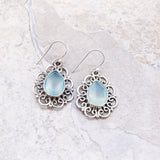 Calm and soothing aqua chalcy stone are one of our faves! MARTA earrings feature beautiful ocean green aqua chalcy gemstones with intricate sterling silver design.