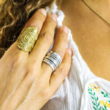 BINDI Brass Spinner Ring highest quality all the way around. Classic and elegant Silver ring style suitable for any occasion. Jewelry crafted with care and love BINDI Brass Spinner Ring.