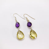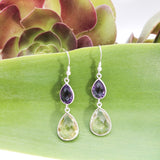 Twice the energy, twice the fun. Beautiful Citrine and Amethyst crystal dangle earrings.