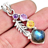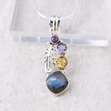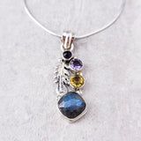 - Materials: .925 Sterling Silver, Blue Labradorite, Blue Topaz, Citrine, Amethyst