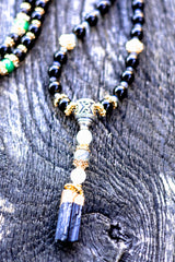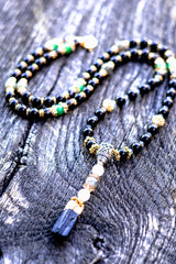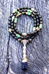Each mala is created using the highest quality gems and stones, 22k gold, and sterling silver. All the stones have been carefully selected so that each mala exudes a desired energy.