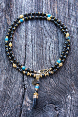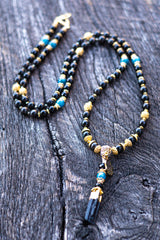 - Ancient Nuumite, Natural Blue Apatite, Black Onyx, Pyrite, 18k and 22k Gold