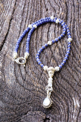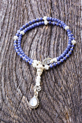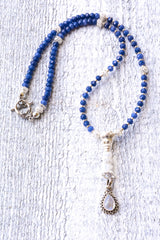 Anchored by the celestial beauty of Natural Sapphire—the stone of kings and seers—this sacred mala embodies divine wisdom, royal protection, and spiritual clarity. The Sapphire's deep blue energy activates both the Third Eye and Throat Chakras, enhancing intuition while empowering truthful expression with noble grace. Paired with ethereal Blue Moonstone, this combination creates a powerful flow of feminine lunar energy and psychic awareness, while the Lotus Flower symbolism reminds you to rise above challenges with spiritual purity.
