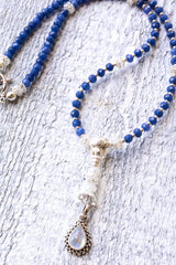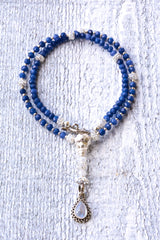 Royal Enlightenment Mala: Sapphire Wisdom & Lunar Grace