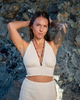 Elevating these malas to a celestial plane, they are first purified through the ancient rituals of smudging with sage and palo santo. Guided by the sun and moon, they absorb the universe's energy through a complete lunar cycle. Each mala is given a sound bath, so they attune to their highest vibrational frequency.