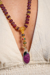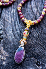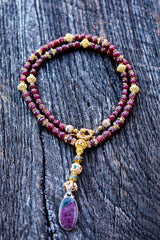 • Material: ~300cts of exquisite natural rubies, Natural Blue Labradorite, Swarovski Crystals, 18k & 22k Gold, Sterling Silver