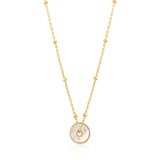 Add some charm to your décolletage with this delicate gold disc necklace. Its beaded chain adds to the overall elegance of this piece. This is the perfect addition to your summer wardrobe thanks to its mother of pearl.