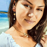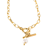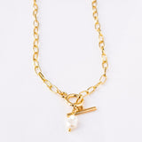 Chain links are all the trend this year. REGAN necklace is a classic gold chain link necklace, with a beautiful pearl accent on the lariat.   Mix and match all the new pieces in our Chain Link Collection.