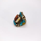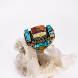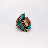 Materials: Nepalese Silver, Himalayan Turquoise, Red Coral, Raw Amber