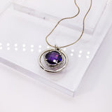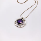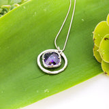 A perfect angelic halo necklace. Shimmering purple amethyst floating in a hand hammered silver circle design.