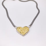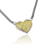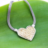 The most unique heart pendant necklace we have ever seen. Absolutely breathtaking heart design with 14k gold filigree inlayed over sterling silver. A perfect statement piece sure to get the oohhhs and ahhhhs you want.
