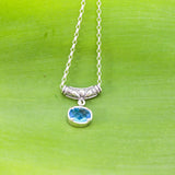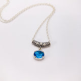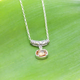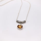 A simple yet understated necklace that makes a big statement. Vibrant topaz suspended from a unique silver necklace design.