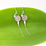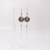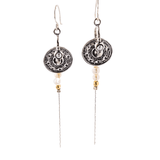 Full of joy, GIOIA earrings are so incredibly beautiful. Hand etched silver circles with ancient Greek floral patterns accented with pearls and 14k gold beads on silver strand.