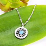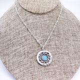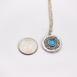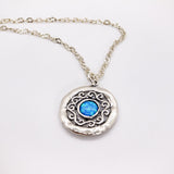Vibrant Blue Opal set in sterling silver circle pattern.