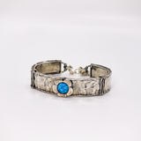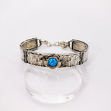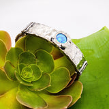 Spring is always in the air! Hand hammered sterling silver flower design with Opal center. Three piece hammered silver cuff bracelet.
