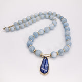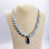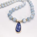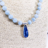 Beautiful and elegant natural Aquamarine beaded necklace with kyanite sterling silver pendant.