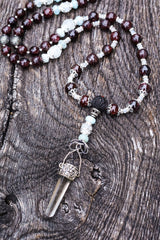 Each mala is created using the highest quality gems and stones, 22k gold, and sterling silver. All the stones have been carefully selected so that each mala exudes a desired energy.