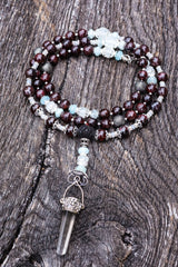 - Natural Garnet, Blue Moonstone, Selenite, Aquamarine, Sterling Silver
