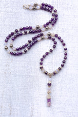 Each mala is created using the highest quality gems and stones, 22k gold, and sterling silver. All the stones have been carefully selected so that each mala exudes a desired energy.