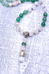 Each mala is created using the highest quality gems and stones, 22k gold, and sterling silver. All the stones have been carefully selected so that each mala exudes a desired energy.