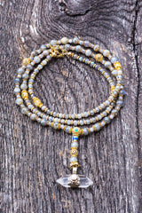 Each mala is created using the highest quality gems and stones, 22k gold, and sterling silver. All the stones have been carefully selected so that each mala exudes a desired energy.
