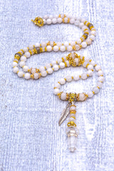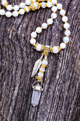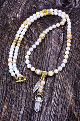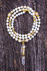 Each mala is created using the highest quality gems and stones, 22k gold, and sterling silver. All the stones have been carefully selected so that each mala exudes a desired energy.