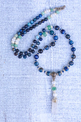 Elevating these malas to a celestial plane, they are first purified through the ancient rituals of smudging with sage and palo santo. Guided by the sun and moon, they absorb the universe's energy through a complete lunar cycle. Each mala is given a sound bath, so they attune to their highest vibrational frequency.
