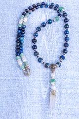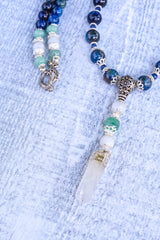 Each mala is created using the highest quality gems and stones, 22k gold, and sterling silver. All the stones have been carefully selected so that each mala exudes a desired energy.