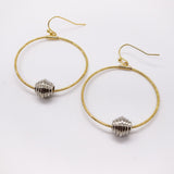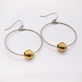 Modern design gold hoop two toned earring with silver accent piece.