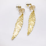 These statement-making earrings will make a splash no matter where you go. Gold feather drops earrings with smokey quartz crystals.