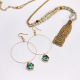 You’re a knockout—and your jewelry should be, too. Heads will turn when you hit the town in our CHANELLE earrings. 14k Gold plated hoops with stunning Abalone accent drops.