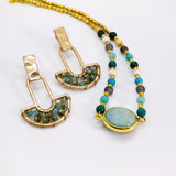 Modern Boho design, super versatile. Gold plated brass with crystal accent beads.
