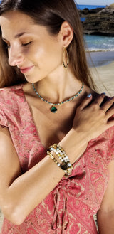 Everything is handmade, using only the finest raw materials, metals, .925 sterling silver, semi precious stones, and highest quality fabrics & dyes.
