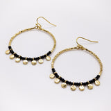Simple enough for everyday, yet chic enough for night. Gold hoops with black accent beads, and small gold circle flares.