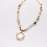 Materials: Amazonite beads, quartz crystal pendant, Gold plated brass