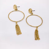 Make a statement with these classic gold hoops with gold fringe. Perfect to dress up or dress down.