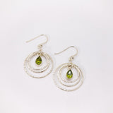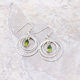 Three rings are better than one. GIULIA earrings go with every look. Sterling silver rings with vibrant Peridot tear drop.