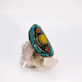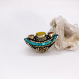 Materials: Nepalese Silver, Raw Amber, Himalayan Turquoise, Red Coral