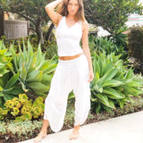 Maximum comfort, minimum effort. Our JASMINE harem pants are so soft and sultry. You will never want to take them off. These pants have leggings inside with flowing silk layers on top. These pants are so fresh and exciting.