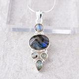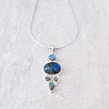 Oh how we love labradorite....let us count the ways. ANOUSH necklace features five stunning pieces of double blue natural labradorite.