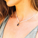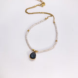 Materials: Smokey Quartz pendant, Aura Quartz beads, Gold plated brass