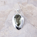 The crown jewel of India.  Absolutely radiant piece of Green Amethyst. This stone will encourage you to be your unique and fabulous self.   Made with the most magnificent piece of Green Amethyst set in Sterling Silver. There is only one AADHYA available.  Once she is gone, she is gone for good.  Take her home today with you.