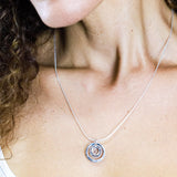 Giving you a New Style. CAMILLA Topaz Circle Necklace is around two circles with topaz in the middle. This necklace looks like an eye that shows beauty, warmth, and fascination. This will be suitable in business attire and casual attire.