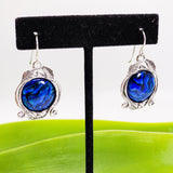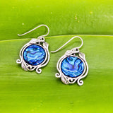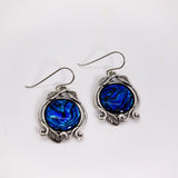 Beautiful pomegranate leaf design with mesmerizing blue abalone center stone.