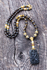 Each mala is created using the highest quality gems and stones, 22k gold, and sterling silver. All the stones have been carefully selected so that each mala exudes a desired energy.