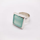 Handcrafted .925 Sterling Silver with square cut Aqua Chalcy stone.